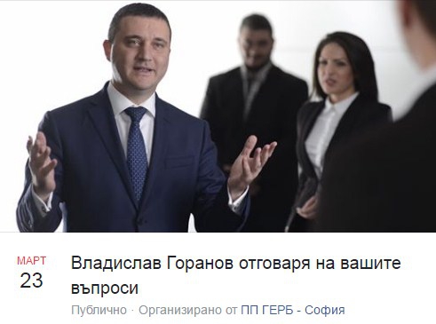 Водачът на листата на ГЕРБ в Силистра - Владислав Горанов ще отговаря на живо във фейсбук на 23 март