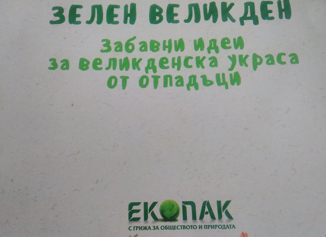 Тази година идеята "Зелен Великден" ще влезе в 9 детски градини, 4 детски ясли, 4 основни училища и клубовете към ОДК, под формата на забавна книжка. Тя насочва как да се оползотворят и претворят отпадъци в арт материали и украса.