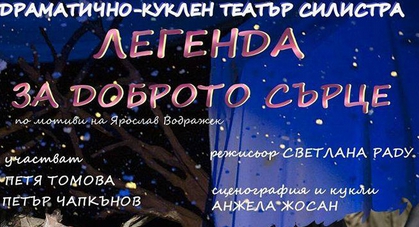 "Легенда за доброто сърце" е най-новото заглавие в афиша на Драматично-кукления театър в Силистра. То е по текст на Ярослав Водражек, под режисурата на молдовката Светлана Раду. <span>Сценографията и куклите в спектакъла са направени от Анжела Жосан. Постановката е с участието на актьорите Петя Томова и Петър Чапкънов. Премиерата на спектакъла е на 13 април, от 11 часа. Още за постановката чуйте от Златина Станева - директор на силистренския театър.