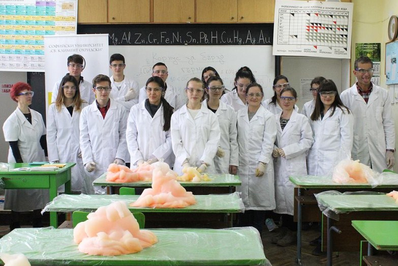 Часът по химия може да бъде и забавен. В това се увериха за пореден път 16 ученици от 10, 11 и 12 клас със засилен интерес към науката, които имаха щастието да се докоснат до магията, наречена химия, благодарение на вълшебната спирка от турнето на пътуващата химична лаборатория в ЕГ "Пейо Яворов". Под вещото ръководство и същевременно увлекателния подход към работата, доц. Лъчезар Христов – ръководител на проекта и преподавател по полимери към Факултета по химия и фармация в СУ, нетърпеливите ученици влязоха в ролята на вещи химици и се включиха в една от най-вълнуващите страни на химията – експериментите. Доц. Христов и неговата асистентка– Вероника Колева, студентка в трети курс, специалност химия в СУ, осъществиха основната мисия на лабораторията – да покажат, че науката може да бъде красива и забавна освен, че е много полезна и строга, сложна за овладяване и значима по своята същност.