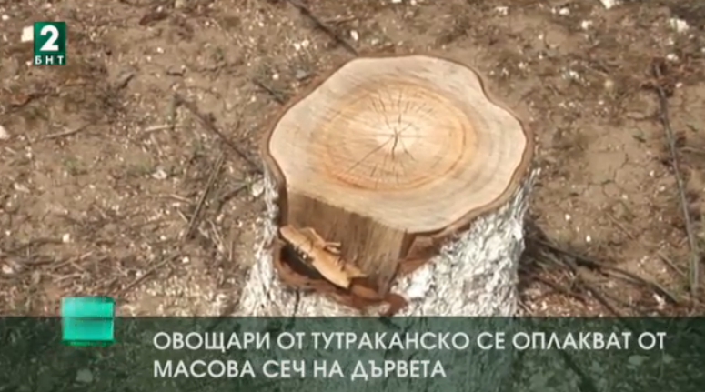 Овощари от Тутраканско пострадаха от масова сеч на плодни дръвчета. Неизвестни лица са отсекли близо 200 дръвчетата, след което са ги оставили в градините на стопаните. Въпреки оплакванията на земеделците разследванията са прекратени, а виновни за сечта няма