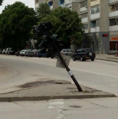 Неизвестен все още извършител е съборил светофарната уредба на кръстовището между булевард "Македония" и улица "Добрич" в Силистра. Инцидентът най-вероятно е станал снощи или рано тази сутрин. Светофарната уредба е собственост на община Силистра, а нанесените щети са вероятно в размер на няколко стотин лева.