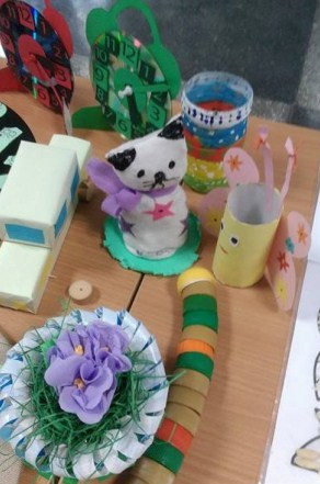 Красивите пана, играчки, моливници, накити и сувенири са изработени от пластмасови бутилки, кутии, картонени рула, найлонови торбички, капачки и други непотребни опаковки.