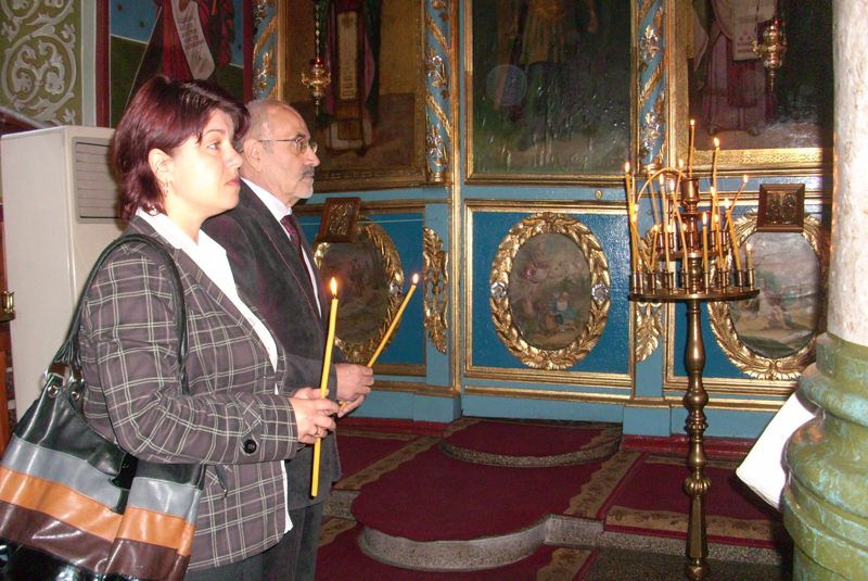 Рано тази сутрин те запалиха свещ за здраве в катедралния храм "Св.Св. Петър и Павел". Д-р Янков и г-жа Михайлова присъстваха на част от Светата архиерейска литургия, отслужена от негово високопреосвещенство Доростолския митрополит Амвросий, в съслужение с архиереи и духовници от страната и чужбина. Те, заедно с десетки миряни се поклониха пред иконите на Света Богородица, които са предоставени за празника на града – Кръстовден от православната църка на Украйна.