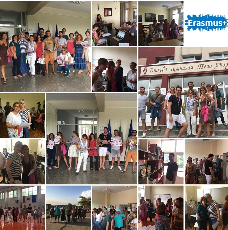 В началото на юли Езикова гимназия посрещна делегации от пет държави – Франция /гр. Марсилия/, Италия /гр. Палермо/, Гърция /гр. Каламата/, Германия / гр. Фрайбург/ и Кипър /гр. Пафос/. Целта на посещението бе да се проведе транснационално събрание на партньорите по проект, финансиран по програма "Еразъм", за да се обсъди и подготви финалният отчет. Международният екип по проекта бе от 20 учители от страните в Европа, а гостуващите 12 участници бяха впечатлени от съвременната материална база на Гимназията. Емоционалното им отношение, създадено по време на двугодишния проект, създаде атмосфера на искреност, приятелство и професионализъм при обсъжданията на извършените дейности, на организираните ученически мобилности и обучения на учителите / в Кипър/. Колегите признаха, че нашата база е най-функционална, най-естетически решена и най-актуална.