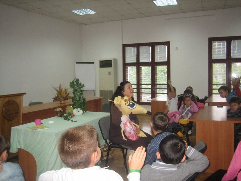 В залата на Общинския съвет в гр.Тутракан по инициатива на "Детския отдел" на библиотеката при ОНЧиталище "Н.Й.Вапцаров-1873" се проведе среща с Весела Фламбурари и децата от начален курс от двете училища в града.