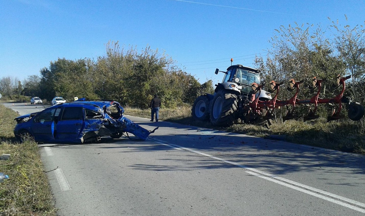 Тежка катастрофа до Алфатар с участие на тир, трактор и три леки коли
