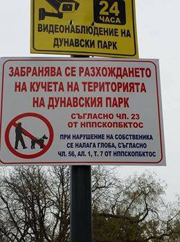 От община Силистра информират, че съгласно Наредбата за опазване на обществения ред на територията на Община Силистра (глава Трета, раздел Първи, чл. 49, т.4) и Наредба за придобиване, притежание и стопанисване на кучета и овладяване на популацията на безстопанствени кучета на територията на община Силистра (чл. 23) е забранено преминаването и разхождането на домашни любимци в дунавския парк. На всички входове и изходи на парка са поставени уведомителни табели. За спазването на наредбата ще следят служители на общинския инспекторат и сътрудници по охрана на парка, със съдействието на служители от МВР. Нарушителите ще бъдат санкционирани съгласно глава Четвърта от същата Наредба.