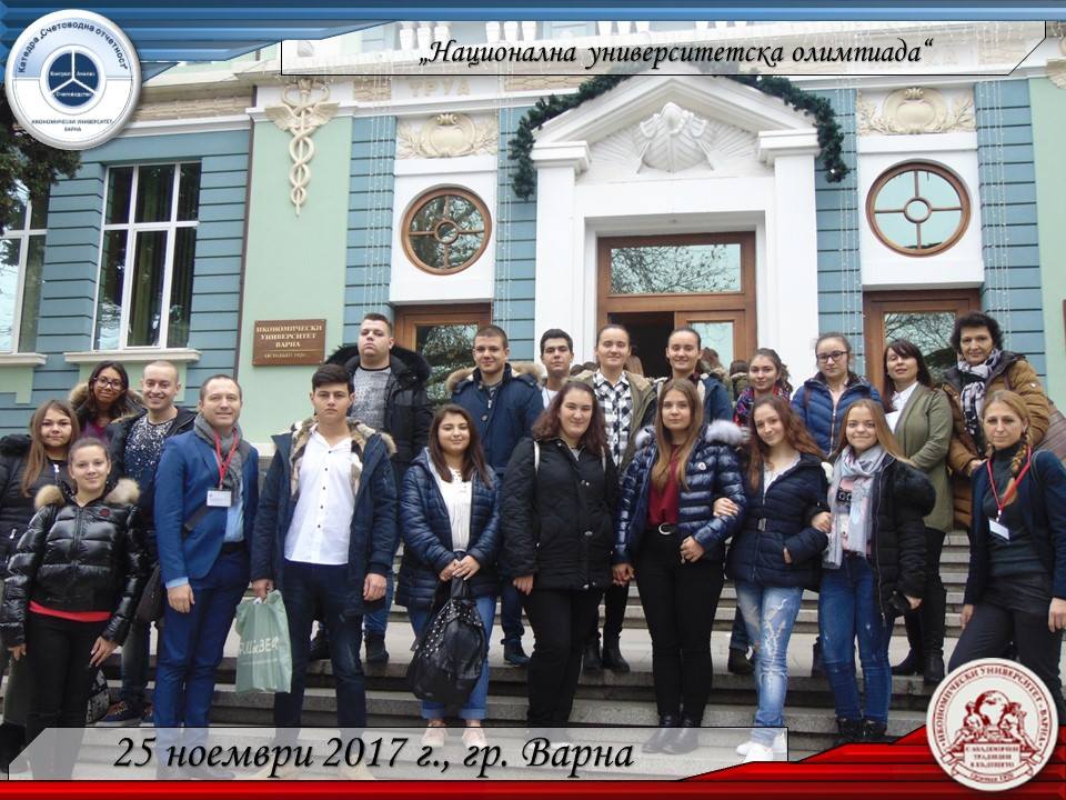 За втора поредна година катедра "Счетоводна отчетност" към Икономически университет – гр. Варна е организатор на Национална олимпиада по счетоводство. Олимпиадата се състоя на 25.11.2017 г. в сградата на университета, като в секция "Счетоводство и одит" участваха над 380 ученици от професионалните търговски и икономически гимназии в страната.