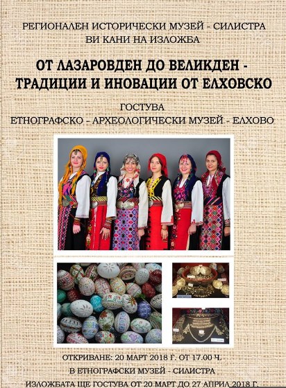 В етнографския музей в Силистра на 20 март ще бъде открита изложба на Етнографско-археологически музей в Елхово "От Лазаровден до Великден", съобщиха от музея в Силистра.