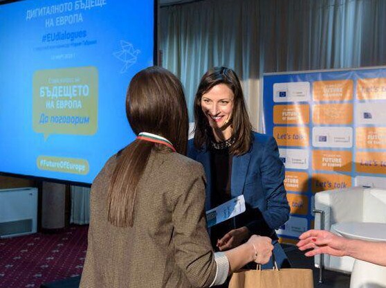Тя откри и първия си в България граждански диалог под мотото "Дигиталното бъдеще на Европа".