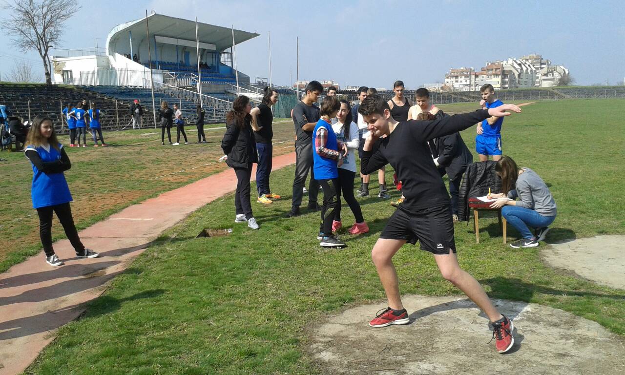 Миналата седмица на стадион "Луи Айер" се проведоха състезания в различни дисциплини – гладко бягане 100м, 200м, 400м, 800м, скок височина, скок дължина, тласкане на гюле и 4 х 100м щафета. Участваха деца от ОУ "Иван Вазов", СУ "Н. Й. Вапцаров" и ПМГ "Св. Климент Охридски". На зоналния етап на състезанията за момичета и за момчета ще ни представят отборите на ОУ "Иван Вазов" във възрастова група 5-ти – 7-ми клас; и отбора юноши 8-ми – 10-ти клас на ПМГ "Св. Климент Охридски".