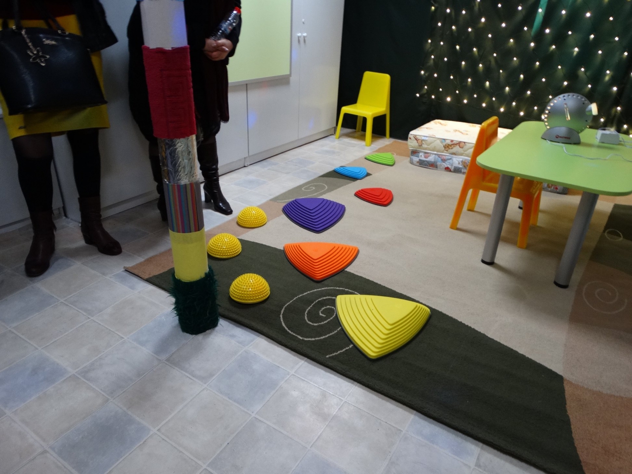 В новооткритата стая специалистите – Ивелина Георгиева /логопед/, Мария Стефанова /психолог – консултант/ и Жанина Петрова /ресурсен учител/, запознаха в подробности присъстващите с всички съоръжения, подходящи за деца със специални образователни потребности. Към момента те ще се използват от общо 10 деца. Стимулациите са с определена продължителност и комбинираност, подходяща за всяко дете. Експертите от екипа ще работят на принципа за следване на детето според неговите лични предпочитания и усещания индивидуално.