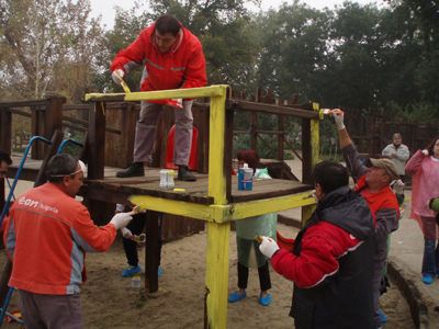 Доброволци от Е.ОН и общината освежиха детската площадка в Дунавската градина