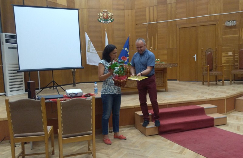 Директорът на училището Илхан Ахмед с благодарност от името на присъстващите поднесе на г-жа Шикерова благодарствен адрес , символични подаръци и цветя и я покани отново да им гостува.
