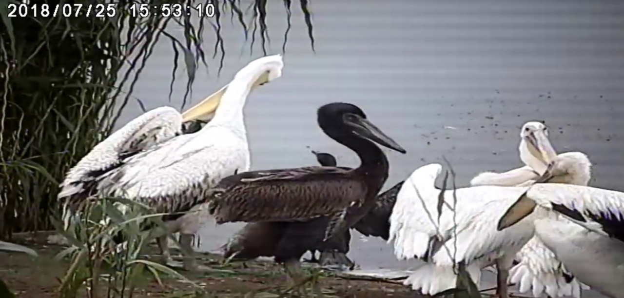 Двойката розови пеликани се сдобиха с малкото в началото на април тази година. Птиците са наблюдавани чрез системата за видеонаблюдение. Малките екземпляри се различават значително от тези на къдроглавите пеликани, тъй като оперението им е много тъмно кафяво, почти черно. В момента розовото пеликанче е поотраснало и вече може да лети. Тази година няколко двойки розови пеликани бяха забелязани да мътят в колонията на къдроглавите пеликани. Не е наблюдавана конкуренция между представителите на двата вида. Експертите се надяват това загнездване да не е епизодично, както е наблюдавано в миналото.