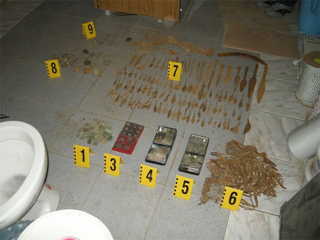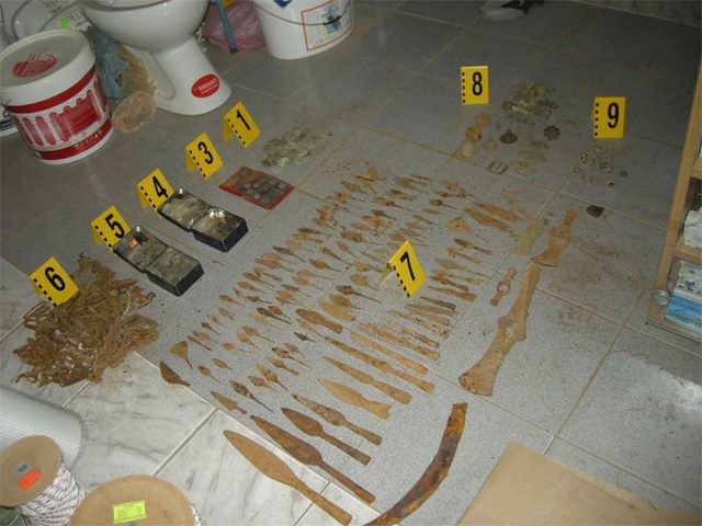 Служители на ГДБОП – сектор "Трафик на културно – исторически ценности" съвместно с териториалните звена "БОП" и полицаи от три областни дирекции – в Разград, Тръговище и Силистра проведоха операция за пресичане на дейността на голяма организирана престъпна група с общо 22-ма участника.В рамките на мащабната акция са проверени 24 адреса на територията на трите области. В хода на полицейските действия служителите открили 25 металотърсача, 859 монети от различни периоди – повечето от античността /основно римски/. 1493 разнообразни антични предмета, основно изделия от метал – апликации – вкл. от колесница, части от амуниции, фрагменти от украса, накити. Сред намереното са няколко особено ценни находки – тракийски меч махайра, бронзова статуетка на Хермес, малка метална пластика на колесница, миниатюрна бронзова чаша, наред с многобройни обеци, фибули, др. накити и фрагменти от метални декорации.