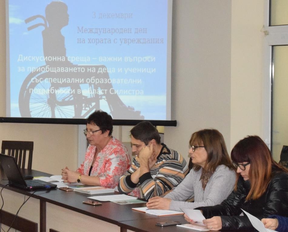 В заседателната зала на Областна администрация Силистра с домакинството на областния управител Ивелин Статев и по инициатива на Ресурсен център Силистра бе проведена среща с участие на държавни, общински и социални институции, както и на родители на деца с увреждания. Повод за срещата бе международният ден на хората с увреждания – 3 декември, както и натрупани въпроси, обобщени в 14 теми, които бяха обсъдени.