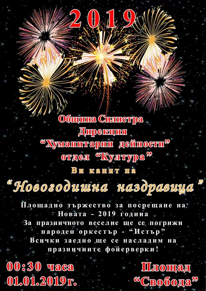 Община Силистра по традиция кани всички жители и гости на града на Новогодишна наздравица в 00.30ч. на площад "Свобода" на 1.01.2019г.