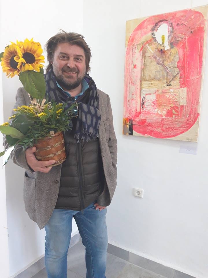 Деян Вълков е автор на паното на калкана на сградата на Община Силистра. Днес, художникът бе поздравен с откриването на изложбата си от кмета на общината