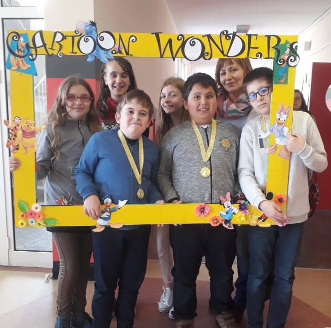 На 29.03.2019г. се проведе Третото областно състезание за развиване на говорните и презентационни умения на английски език Cartoon Wonders. До него бяха допуснати два отбора на петокласниците от ПМГ "Св. Климент Охридски", подготвени от г-жа Сн. Райчева. В единия отбор бяха включени Петър Петров, Мартин Господинов, Толга Вели, а в другия Мила Ненчева, Йоанна Бухчева, Ивет Атанасова. С много вдъхновение, радост, въображение и със завидни за възрастта си компютърни умения участниците изработиха и представиха мултимедийни презентации за любими анимационни герои и филми, придружени с песни и танци. Петър Петров, Мартин Господинов и Толга Вели завоюваха първо място и спечелиха златни медали. Поздравления, момчета!