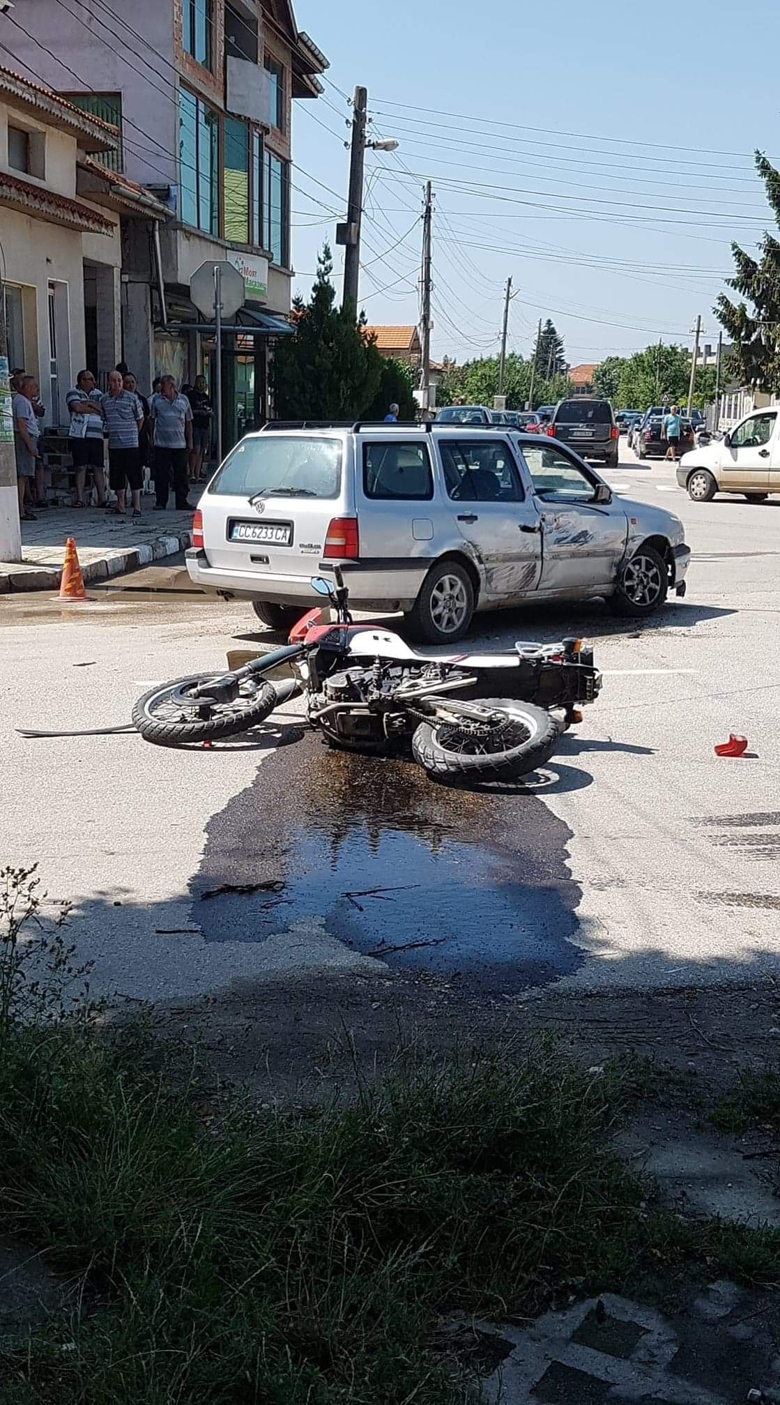 Според очевидци водача на лекият автомобил е отнел предимството на моториста. Пострадал е моториста,