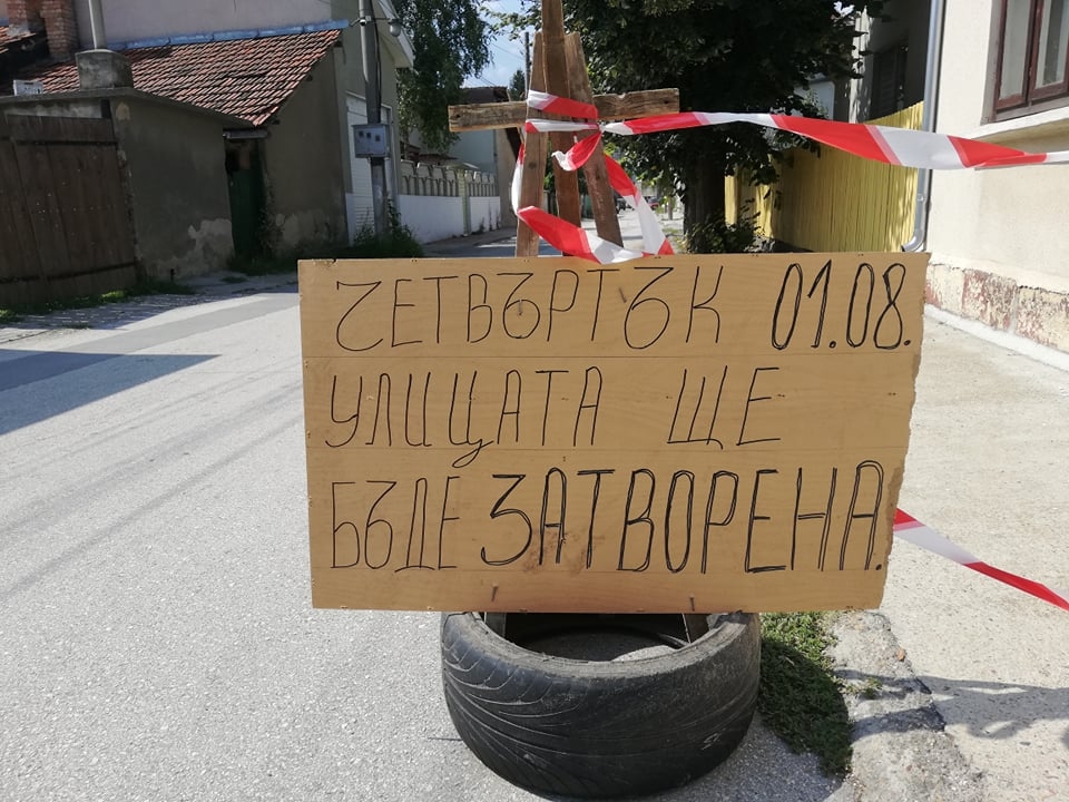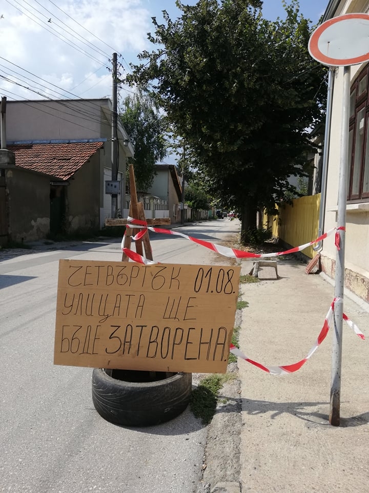 Наши читатели ни алармираха за странна табела, изписана на картон и поставена върху гума и вързана за знака "Забранено е влизането на пътни превозни средства в двете посоки". На табелата се чете надписа: "Четвъртък 01.08. улицата ще бъде затворена".