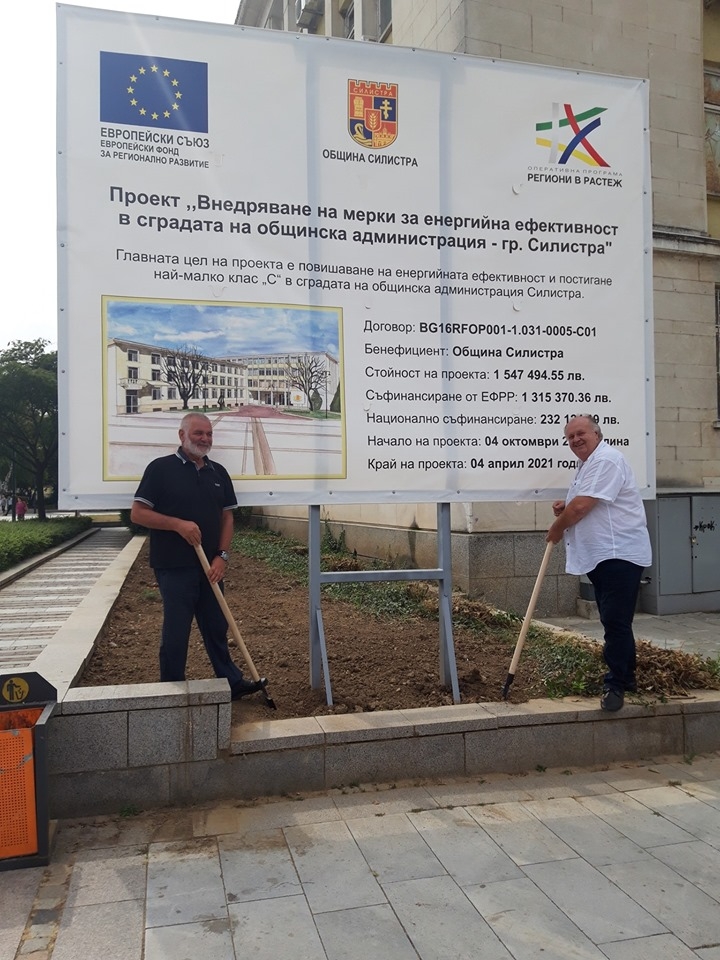 Вчера с церемония "Първа копка" бяха стартирани строително - монтажните и ремонтните работи по проект "Внедряване на мерки за енергийна ефективност в сградата на общинска администрация - Силистра". На събитието присъстваха кметът на община Силистра д-р Юлиян Найденов, представители на авторския и строителен надзор, фирмата изпълнител на СМР, общински съветници, журналисти, екипът за изпълнение на проекта, граждани и служители на общинска администрация.
