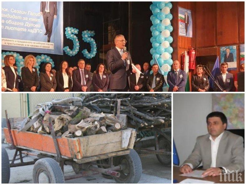 Скандал гръмна в Дулово с кандидат кмет преди изборите, съобщават от сайта ПИК. Племенник на номинирания за поста от ДПС беше изловен от служители на държавно-ловно стопанство да краде дърва. Става дума за Гьокан Сали Камбер, който е близък роднина на кандидата за кмет Сезгин Галиб, издигнат от партията на Мустафа Карадайъ. От документите, с които ПИК разполага, става ясно, че Гьокан е заловен на 3 октомври от горските служители в държавно-ловно стопанство (ДЛС) "Каракуз". Мъжът е от с. Чернолик, а откраднатите дърва ги е транспортирал с лек автомобил и каруца, вързана като ремарке, за да може да побере повече дървесина. Най-скандалното в случая е, че преди няколко седмици лидерът на ДПС Мустафа Карадайъ лично представи кандидат на партията за нов началник на държавно-ловно стопанство (ДЛС) "Каракуз" Гунай Реджеб. Това е същото стопанство, което излови в престъпление племенника на кандидат-кмета на ДПС за Дулово. В сигнала до медията ни източниците питат с каква цел ДПС иска да назначи свой началник в горското стопанство в Дулово и дали, ако шефът на "Каракуз" е близък до партията, хора като племенника на Сезгин Галиб, ще могат спокойно да секат дърва в района напълно незаконно?
