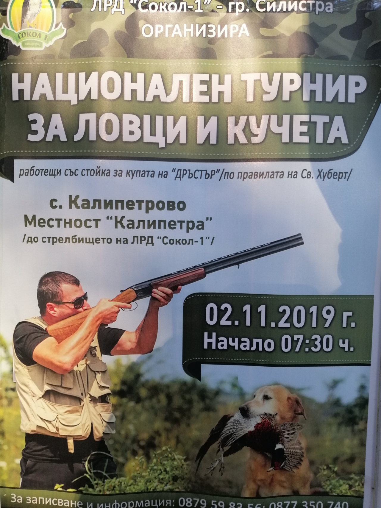 ЛРД "Сокол-1"град Силистра организира национален турнир за ловци и кучета, работещи със стойка по правилата на "Св. Хуберт" за Купата на "Дръстър" .