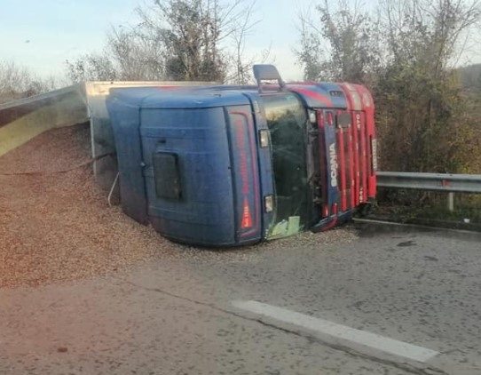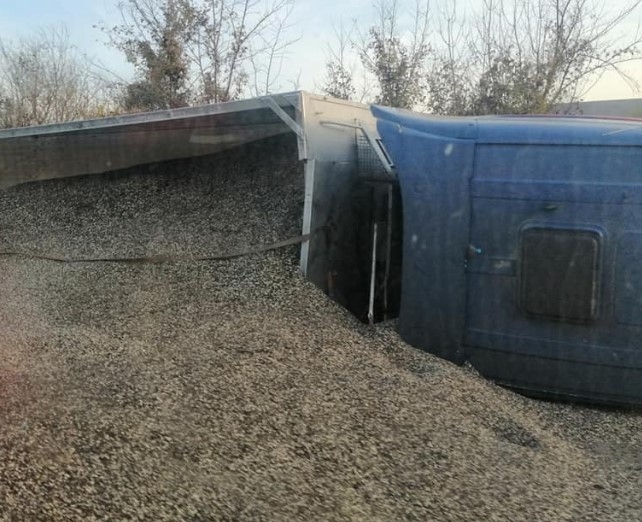 ТИР се обърна на главен път Силистра - Русе, до разклона за село Гарван. Инцидента е станал днес около 16.00 часа, разбираме от социалната мрежа. Шофьорът на камиона е добре, а движението е затруднено в участъка, заради разпилените слънчогледови люспи.