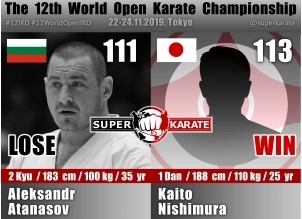 Александър Атанасов излезе срещу японеца Каито Нишимура, който през 2018 година стана световен шампион по чупене на дъски (Tameshiwari). По-младия с 10 години и по-тежък с 10 килограма японец победи силистренеца след много здрав бой.