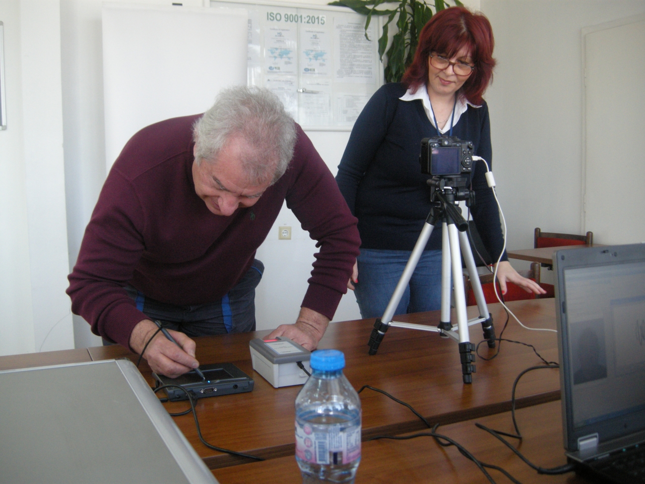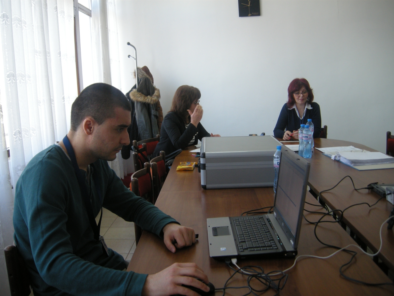 На снимките: Служителите в сектор "Български документи за самоличност" Николинка Петкова и Стоян Русинов работят безпроблемно с мобилната станция