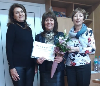 Почетната грамота беше връчена от секретаря на организацията- г-жа Маргарита Любомирова, а букета от лилиуми- от експерта г-жа Мария Неделчева в присъствието на ръководството на организацията.