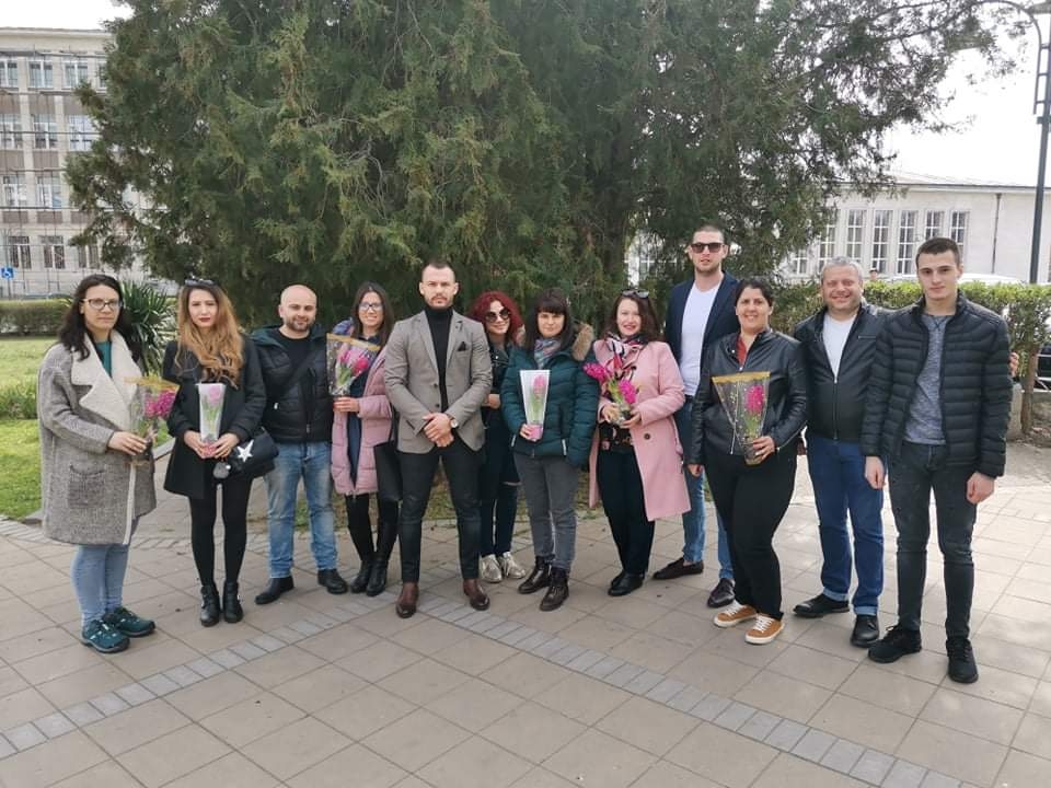 Инициативата по повод Международния ден на жената - 8 март, се проведе в центъра на града. Младежите заредиха с позитивно настроение много дами, като ги поздравиха по повод празника и им подариха гербери - символ на чистотата и красотата, която въплъщава нежният пол.