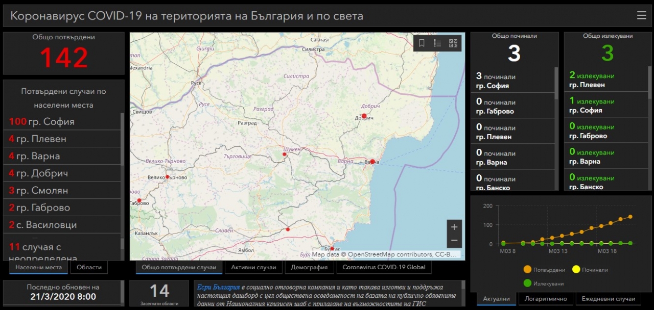 142 са заразените с коронавирус у нас. Това съобщи началникът на Оперативния щаб и началник на ВМА ген.-майор Венцислав Мутафчийски.