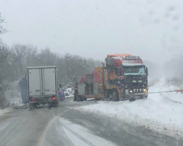 За две произшествия с тежкотоварни автомобили са станали днес по главния път Шумен – Силистра.