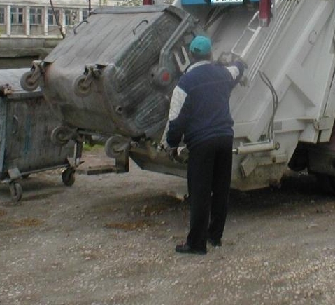Контейнер премаза двата крака на работник на общинската фирма "Синева"