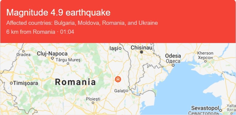 Земетресение с магнитуд 5 по скалата на Рихтер разлюля Румъния в 01:04 ч. българско време на 25 април.