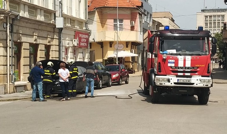 Лек автомобил "БМВ" се запали в движение на булевард "Цар Симеон Велики" в Силистра, до Банка ДСК.
