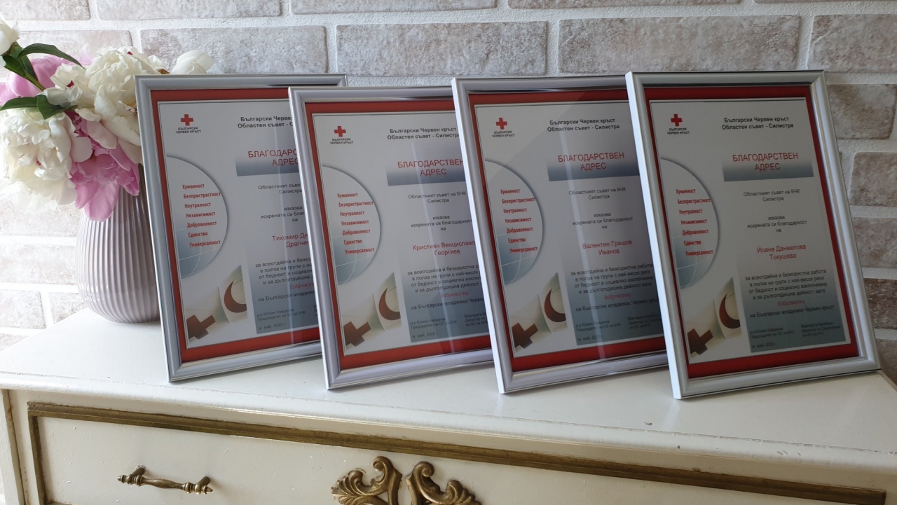 Най-активните и изявени доброволци получиха благодарствени адреси и препоръки от Областния съвет на Български Червен кръст – Силистра.
