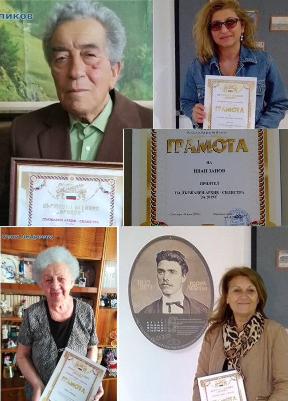 С благодарствени грамоти бяха отличени и нашите дарители: авторът на няколко книги - краеведът Господин Великов за предоставените от него документи от личен произход – печатни издания на монографии, исторически изследвания, родословни дървета; Сени Андреева за предоставените от нея документи от личен произход на съпруга й Андрей Андреев - член Адвокатска колегия Силистра.