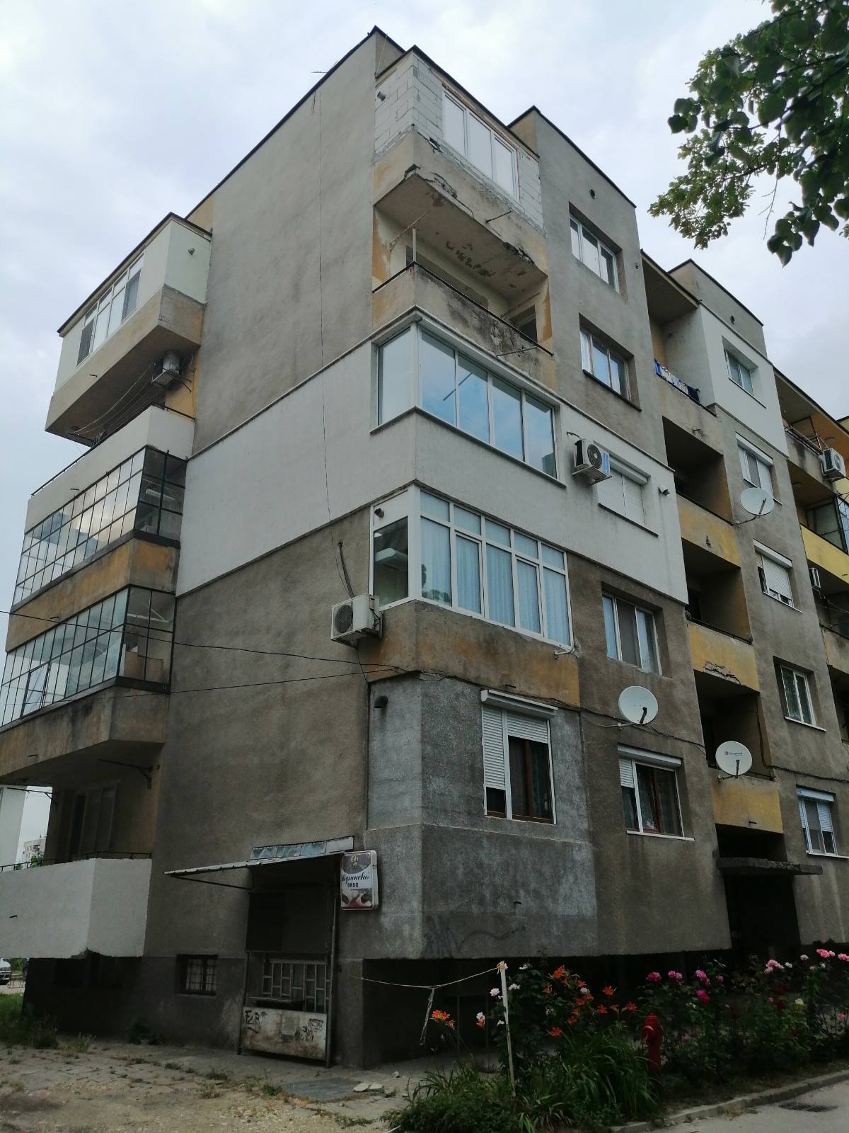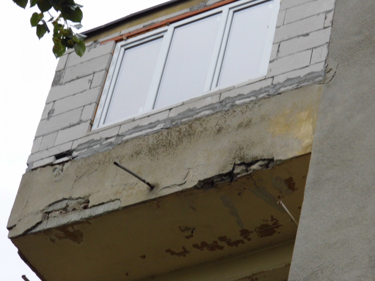 От снимките се вижда, че терасата на петия етаж на сградата е в лошо състояние и е започнала да се рони, което е довело и до "валящите" бетонни парчета около блока.