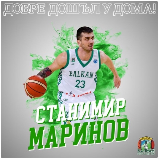 Станимир Маринов отново е част от Балкан. 28-годишният гард бе обявен официално като ново попълнение на шампионите. Националът се завръща при зелените след 3 години пауза. За последно юношата на Доростол игра за Берое. Той ще облече екипа с №23, като е очакван в Ботевград следващата седмица.