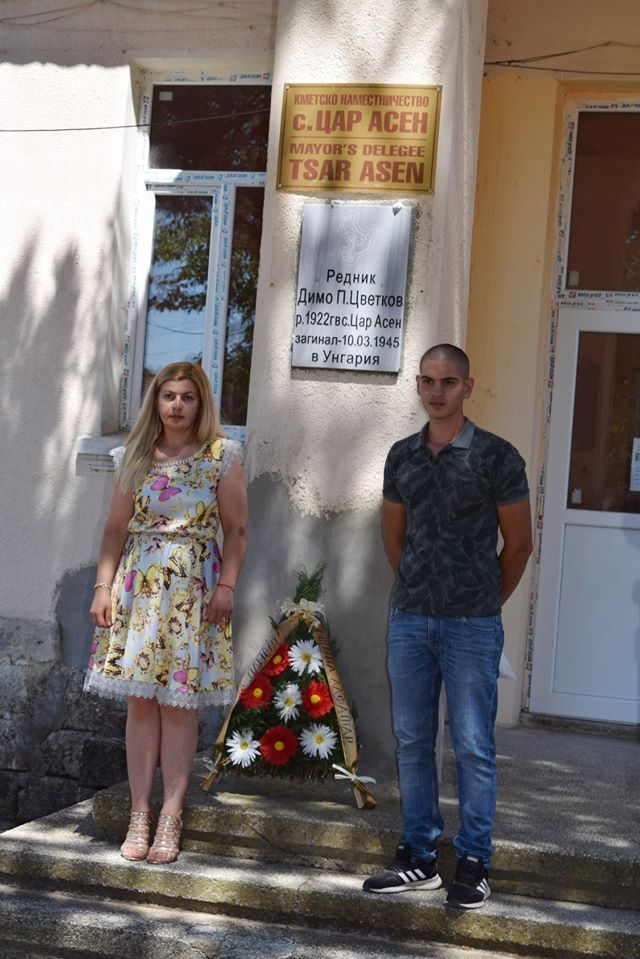 Кметът на село Межден Валентин Костадинов дари паметна плоча на село Цар Асен на геройски загиналия във Втората световна война Димо Цветков.