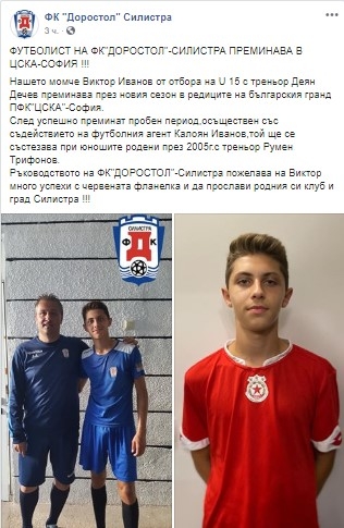 Младият талант на Доростол Силистра Виктор Иванов премина в ЦСКА.