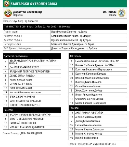 Доростол се изкачи до 11-то място в класирането, а в следващия кръг на 30 август 2020 г., неделя, 18:00 ч силистренци гостуват на Лудогорец 1945 III в Разград.