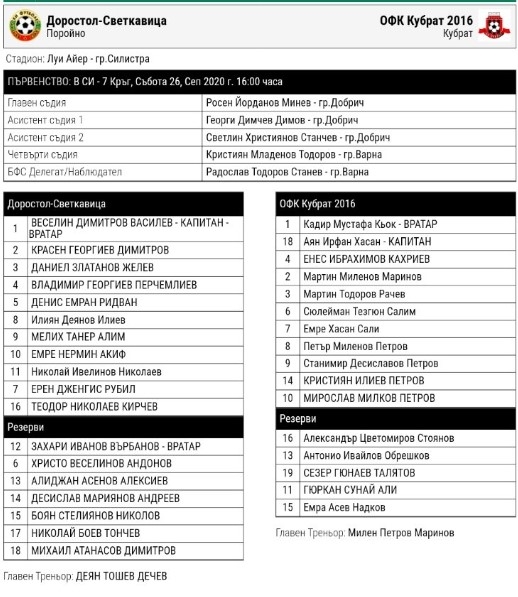 Днес, на 26 септември, на стадион "Луи Айер" в Силистра Доростол посрещна ОФК "Кубрат 2016" от Кубрат в мач от 7-я кръг на Трета лига.