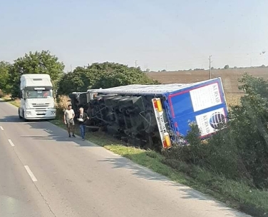 Силистренските пожарникари източили гориво от преобърналия се ТИР до разклона за село Бабук