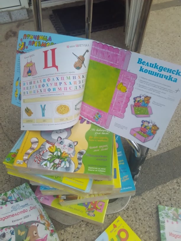 ЦДГ "Роза" е получила 120 комплекта с току-що дошли от издателство "Фют" великолепни книжки за обучение, рисуване и оцветяване, ЦДГ" Добруджа- 80 комплекта, ЦДГ" Иглика"- 130 комплекта и ЦДГ" Ян Бибиян"- 70 комплекта.